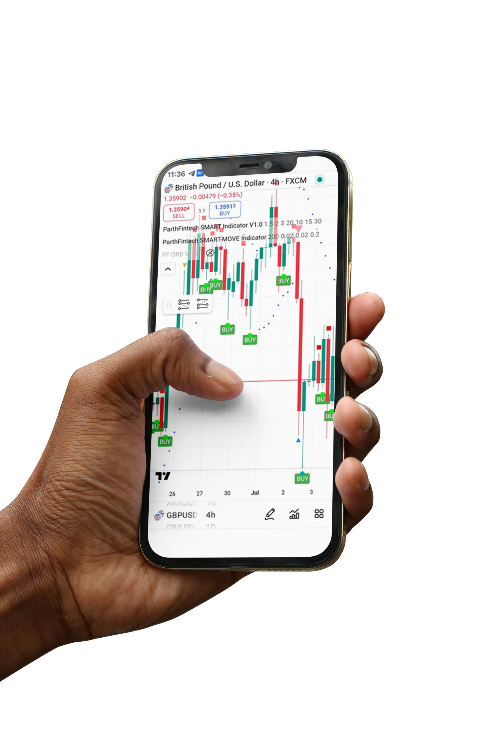 With buy/sell badges that make entries and exits precise